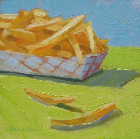 I usually take my daughter Emma to a place called Fatt Dogg after school on Tuesdays. I realize this may not sound like good parenting, especially after yesterday's post! It actually helps raise funds for her school. This time she ordered fries as well but only ate a few of them. Of course I saw this as a painting opportunity! She came up with the title.
